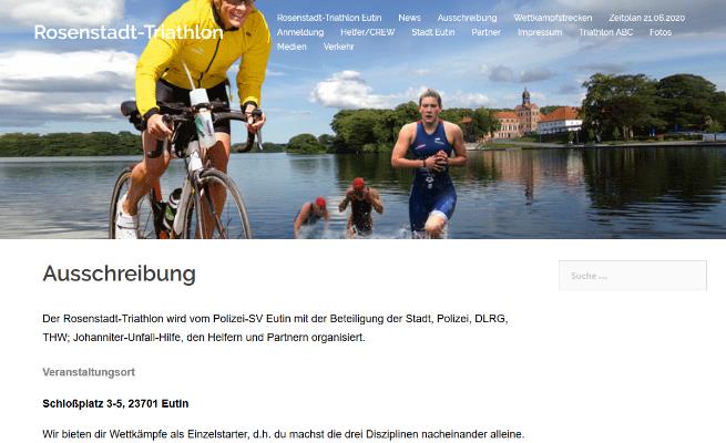 Zitat: "Der Rosenstadt-Triathlon wird vom Polizei-SV Eutin mit der Beteiligung der Stadt, Polizei, DLRG, THW; Johanniter-Unfall-Hilfe, den Helfern und Partnern organisiert."